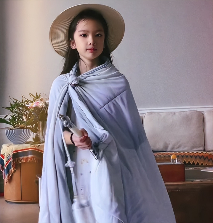 小女孩越来越漂亮了,这身装扮还带着一些英气,像武侠剧里的侠女。
