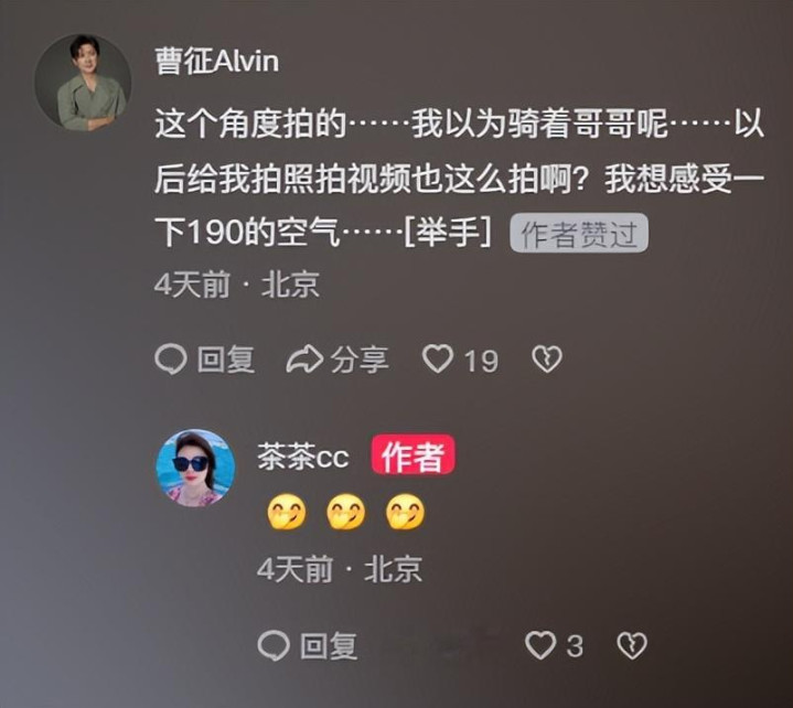 而曹先生没多久也是不例外的立即现身评论区,夸赞妻子的拍摄技术。