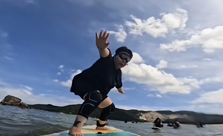 两年前,王惠也是在同样的海边拍视频,那时郭汾阳还在沙滩上追着浪花跑,现在他几乎能和父亲肩并肩。