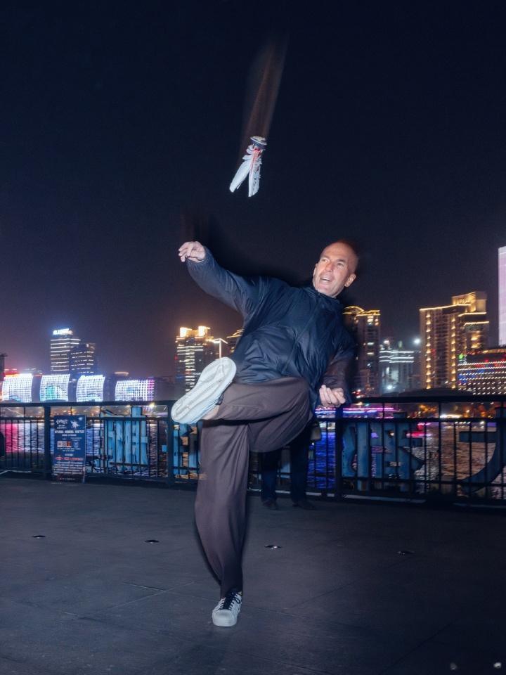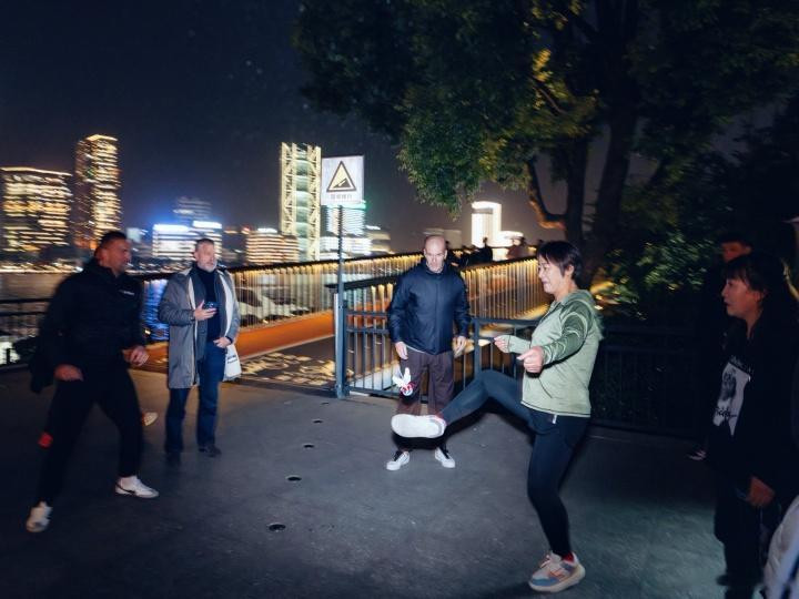 齐达内现身上海街头,与大妈们一起踢毽子,齐祖在一声声“漂亮”中越踢越起劲。