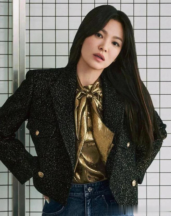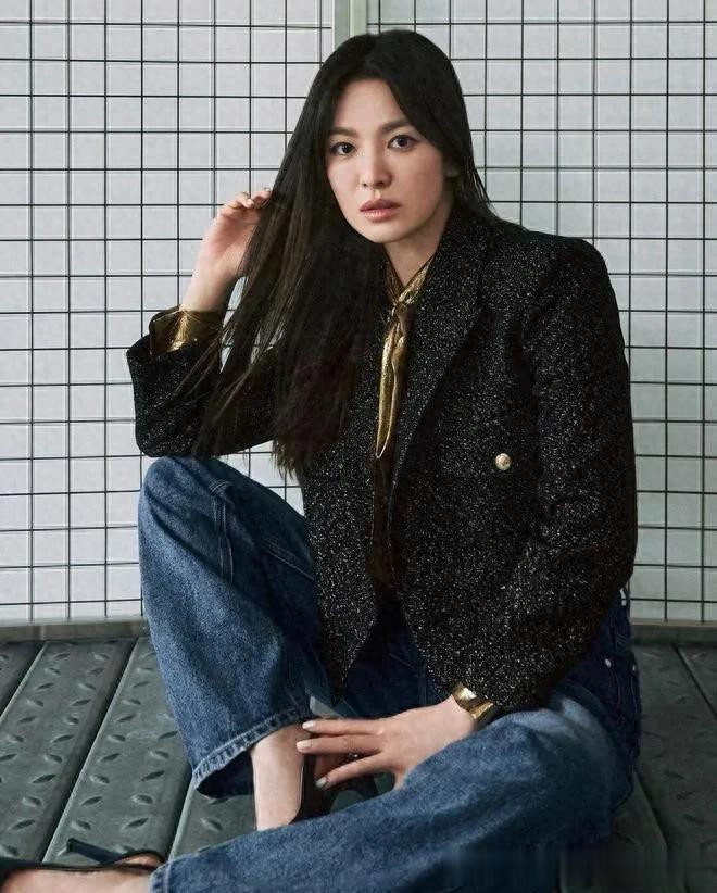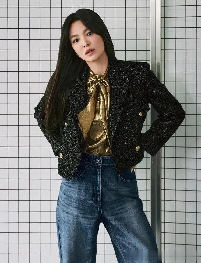宋慧留回长发后大变样! 穿黑色鎏金西装+牛仔裤, 时髦洋气又贵气
