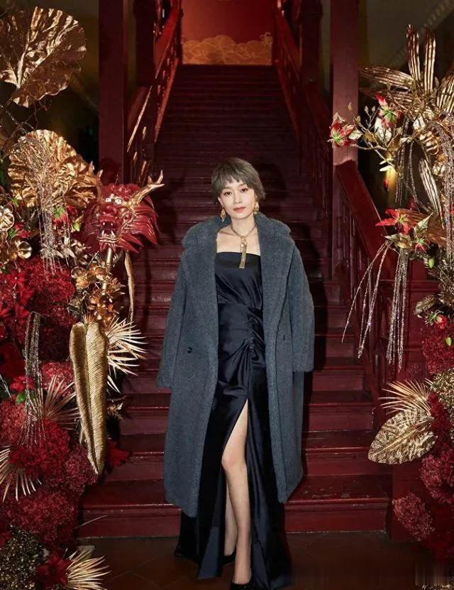 马伊琍新剪了短发真惊艳! 穿羊羔毛大衣+抹胸裙, 美出国际范!