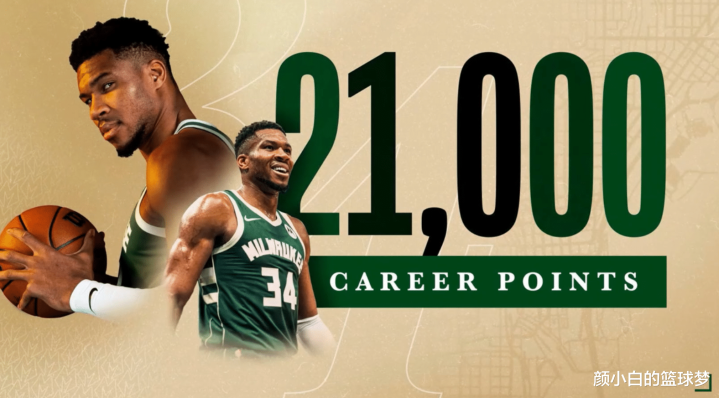 雄鹿官方晒图:扬尼斯30岁358天拿到21000分历史第六年轻,仅次于詹姆斯28岁97天,张伯伦29岁184天,科比29岁194天,杜兰特30岁23天,乔丹30岁34天。